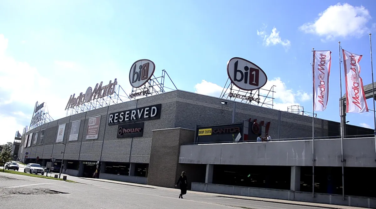 Można wejść po schodach na górny parking od ul. Augustowskiej